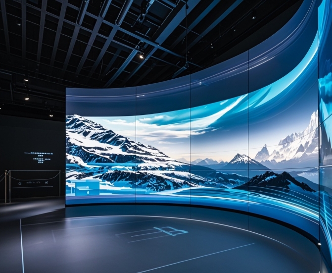 環(huán)形曲面LED顯示屏由多個LED模塊組成,通過電路控制實現(xiàn)圖像顯示。其獨特的曲面結(jié)構(gòu)帶來了更具沉浸感的視覺體驗,但也對光學設(shè)計提出了更高要求。