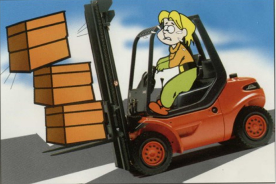 如果駕駛叉車越過(guò)地面上的物體、或經(jīng)過(guò)坎坷不平的地面、多洼地的場(chǎng)所,或者撞擊到頂部的物體、或者碰撞其他的物體,都可能引起叉車的傾翻。